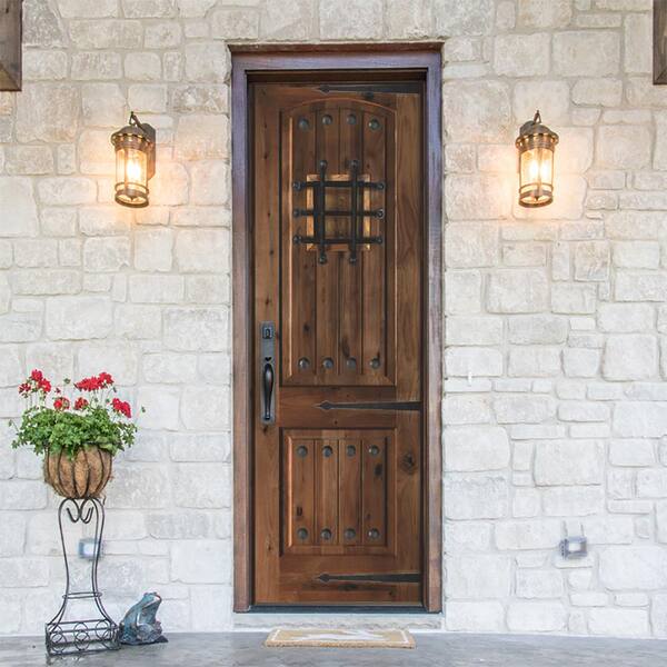 30 in. x 96 in. Mediterranean Knotty Alder Arch Top Provincial Stain Right-Hand Inswing Wood Single Prehung Front Door