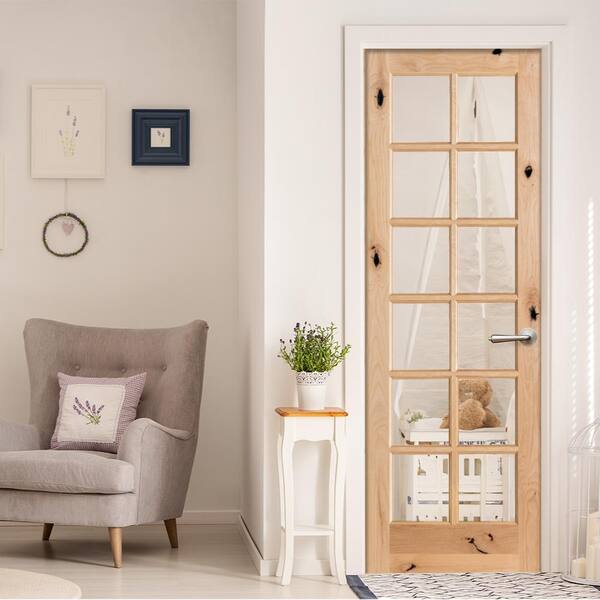 30 in. x 96 in. Rustic Knotty Alder 12-Lite Left-Hand Clear Glass Red Chestnut Stain Wood Single Prehung Interior Door