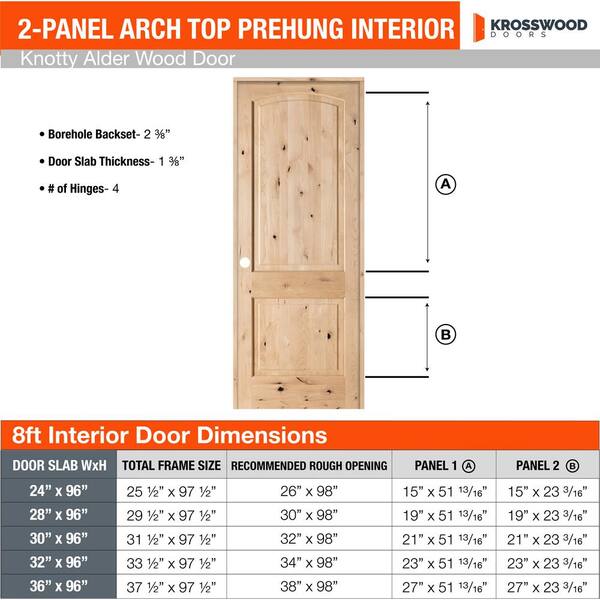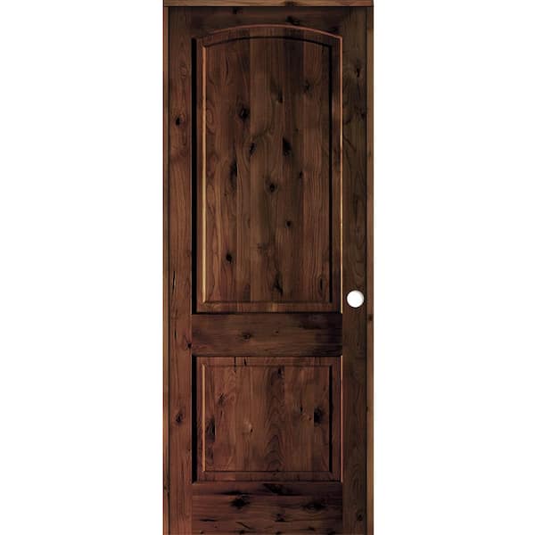 30 in. x 96 in. Rustic Knotty Alder 2-Panel Left Handed Red Mahogany Stain Wood Single Prehung Interior Door w/Arch Top