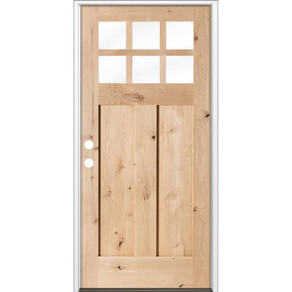 32 in. x 80 in. Craftsman Knotty Alder Right-Hand/Inswing 6 Lite Beveled Clear Glass Unfinished Wood Prehung Front Door
