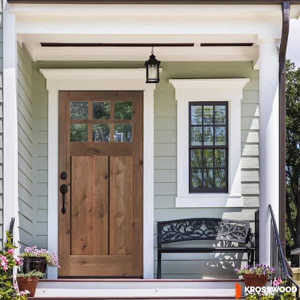 32 in. x 80 in. Craftsman Knotty Alder Right-Hand/Inswing 6-Lite Clear Glass True Black Stain Wood Prehung Front Door