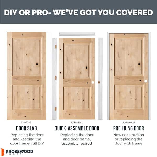 32 in. x 80 in. Knotty Alder 2-Panel Square Top Door (2-Pack)