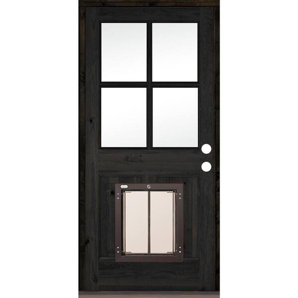 32 in. x 80 in. Knotty Alder Left-Hand/Inswing 4-Lite Clear Glass Black Stain Wood Prehung Front Door w/Large Dog Door