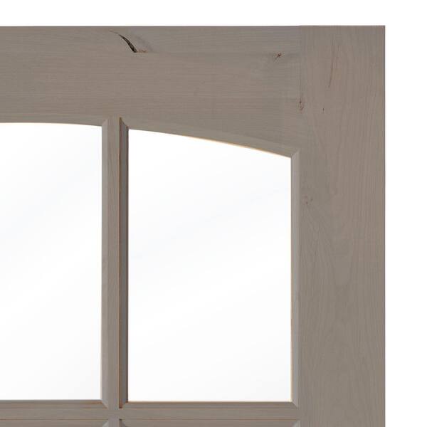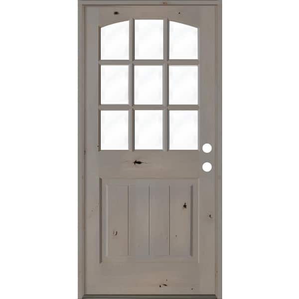 32 in. x 80 in. Knotty Alder Left-Hand/Inswing 9-Lite Arch Top V-Panel Clear Glass Grey Stain Wood Prehung Front Door