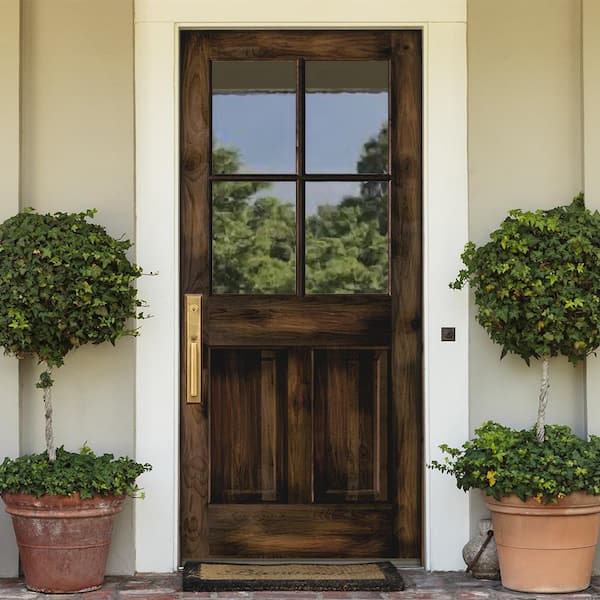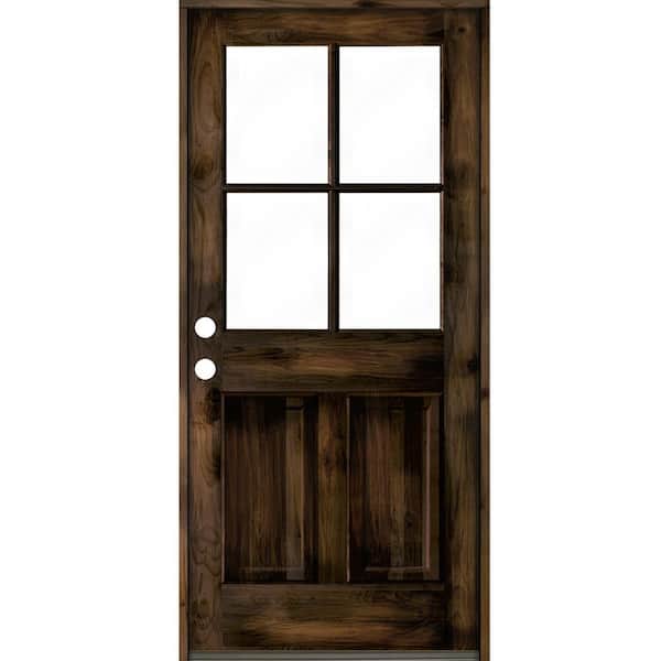 32 in. x 80 in. Knotty Alder Right-Hand/Inswing 4-Lite Clear Glass Black Stain Wood Prehung Front Door
