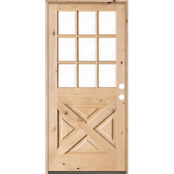 32 in. x 80 in. Knotty Alder X-Panel Left-Hand/Inswing 1/2 Lite Clear Glass Unfinished Wood Prehung Front Door