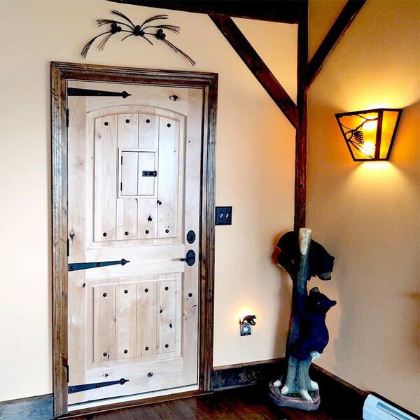 32 in. x 80 in. Mediterranean Knotty Alder Arch Top Clear Stain Right-Hand Inswing Wood Single Prehung Front Door