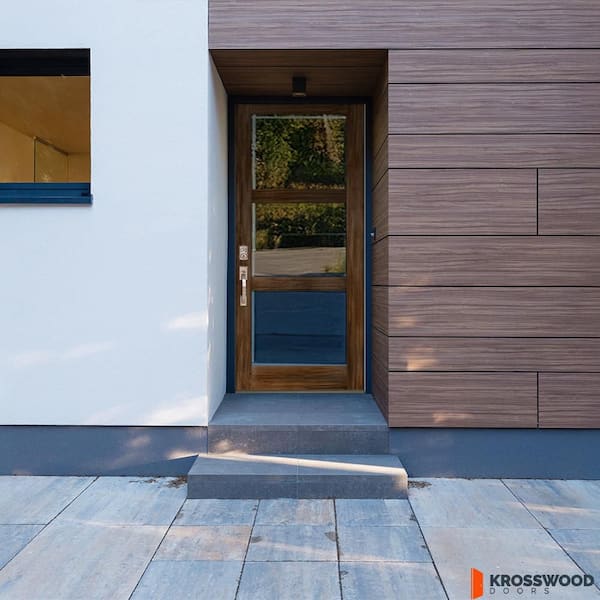 32 in. x 80 in. Modern Hemlock Right-Hand/Inswing 3-Lite Clear Glass Provincial Stain Wood Prehung Front Door