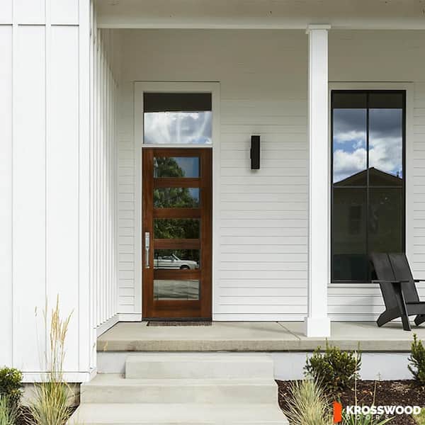 32 in. x 80 in. Modern Hemlock Right-Hand/Inswing 5-Lite Clear Glass Provincial Stain Wood Prehung Front Door