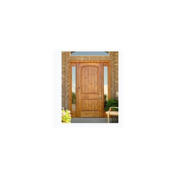 32 in. x 80 in. Rustic Knotty Alder Arch Top V-Grooved Clear Stain Left-Hand Inswing Wood Single Prehung Front Door