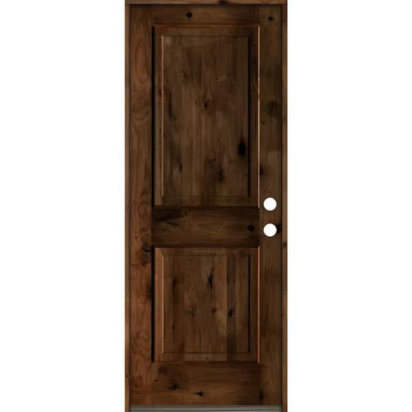 32 in. x 80 in. Rustic Knotty Alder Square Top Provincial Stain Left-Hand Inswing Wood Single Prehung Front Door