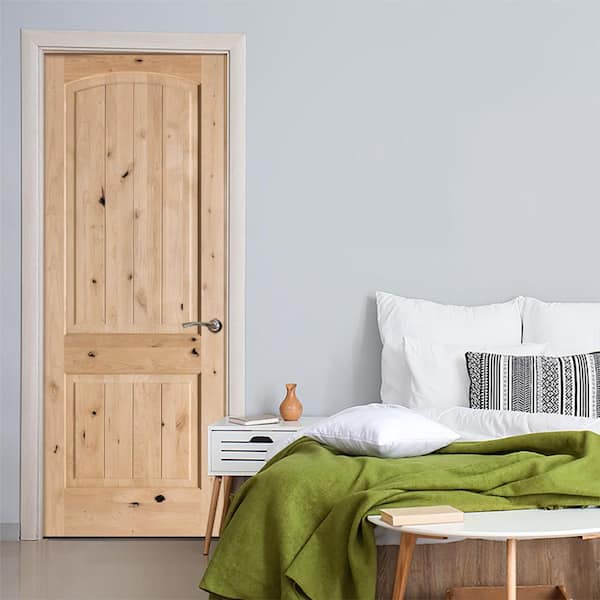 32 in. x 96 in. Knotty Alder 2 Panel Top Rail Arch with V-Groove Solid Wood Core Interior Door Slab