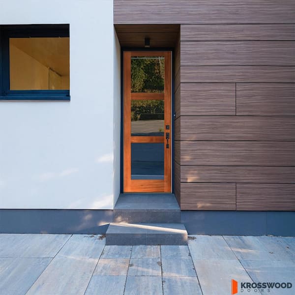32 in. x 96 in. Modern Hemlock Left-Hand/Inswing 3-Lite Clear Glass Red Chestnut Stain Wood Prehung Front Door
