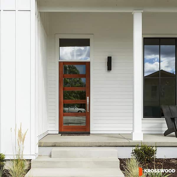 32 in. x 96 in. Modern Hemlock Left-Hand/Inswing 5-Lite Clear Glass Red Chestnut Stain Wood Prehung Front Door