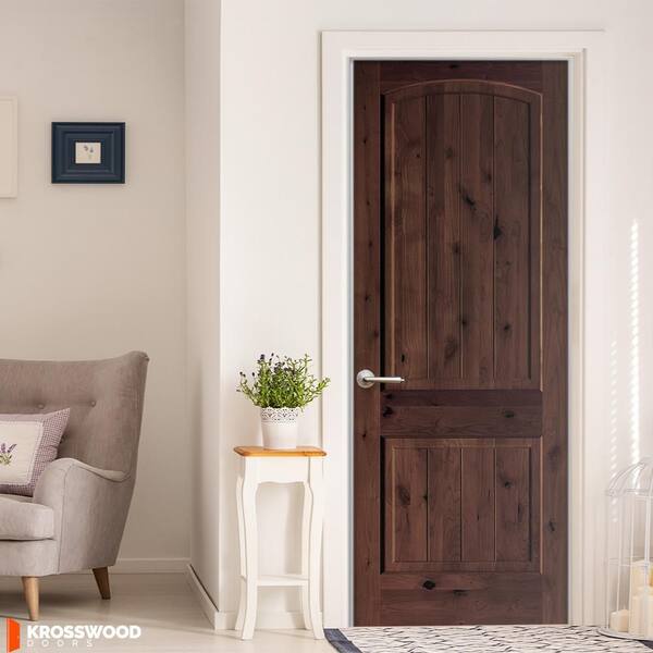32 in. x 96 in. Rustic 2-Panel Arch Top VG Right-Hand Red Mahogany Stain Knotty Alder Wood Single Prehung Interior Door