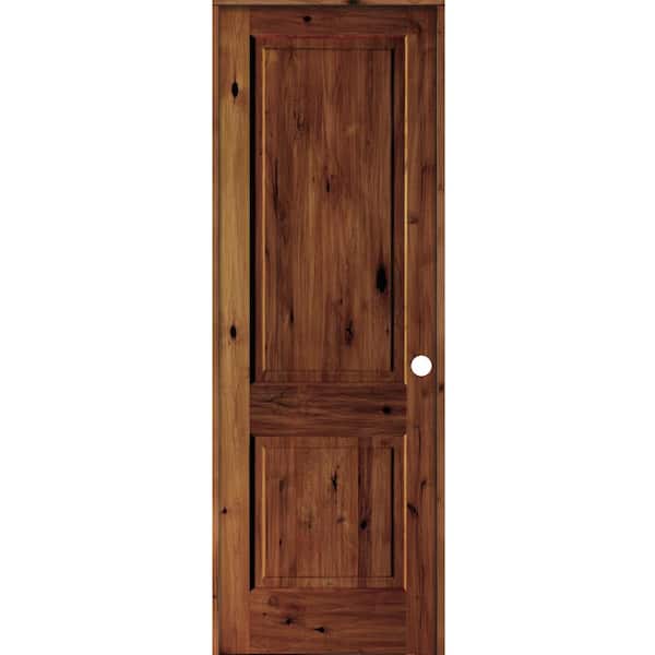 32 in. x 96 in. Rustic Knotty Alder 2 Panel Left Hand Red Chestnut Stain Wood Single Prehung Interior Door w/Square Top