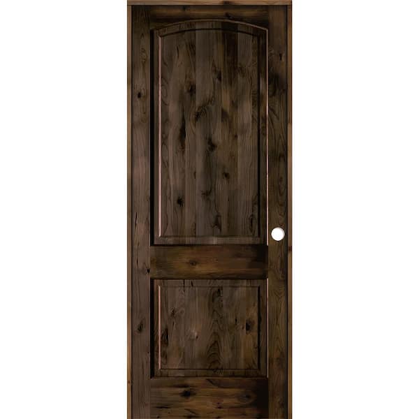 32 in. x 96 in. Rustic Knotty Alder 2-Panel Left Handed Black Stain Wood Single Prehung Interior Door with Arch Top