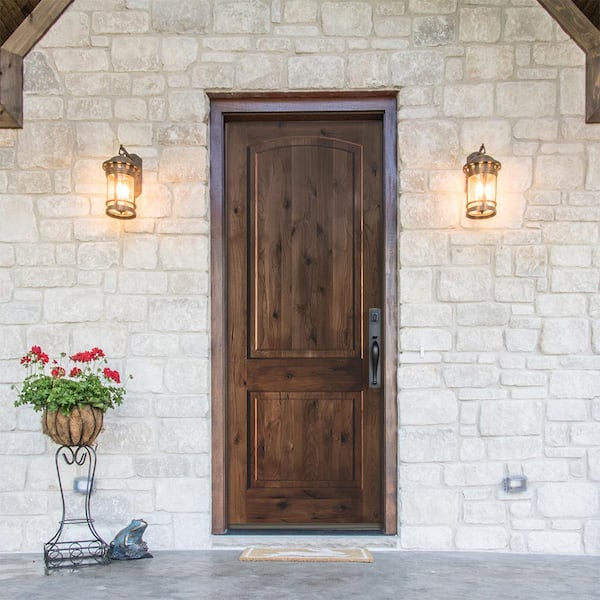 32 in. x 96 in. Rustic Knotty Alder Arch Top Provincial Stain Left-Hand Inswing Wood Single Prehung Front Door