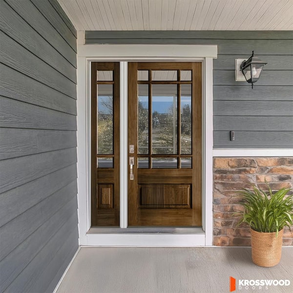 36 in. x 80 in. 3/4 Prairie-Lite Clear Glass Provincial Stain Right Hand Hemlock Prehung Front Door Left Sidelite