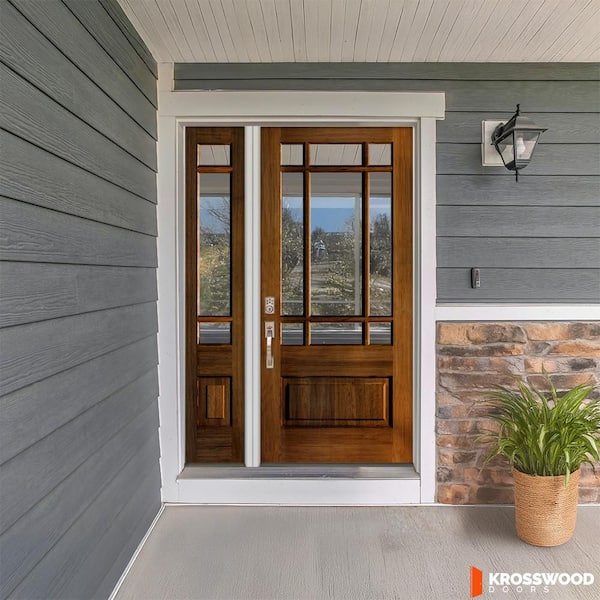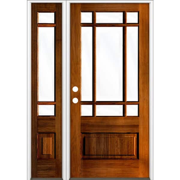 36 in. x 80 in. 3/4 Prairie-Lite Clear Glass Red Chestnut Stain Right Hand Hemlock Prehung Front Door w/ LSL