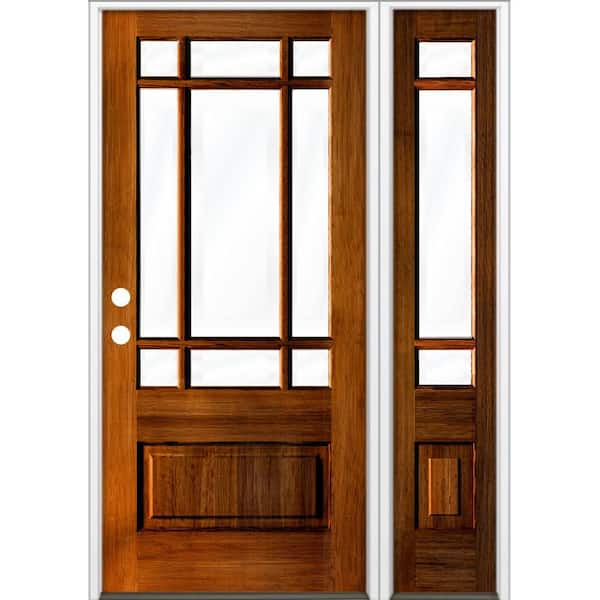 36 in. x 80 in. 3/4 Prairie-Lite English Chestnut Stain Right Hand Hemlock Wood Prehung Front Door Right Sidelite