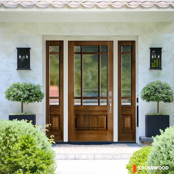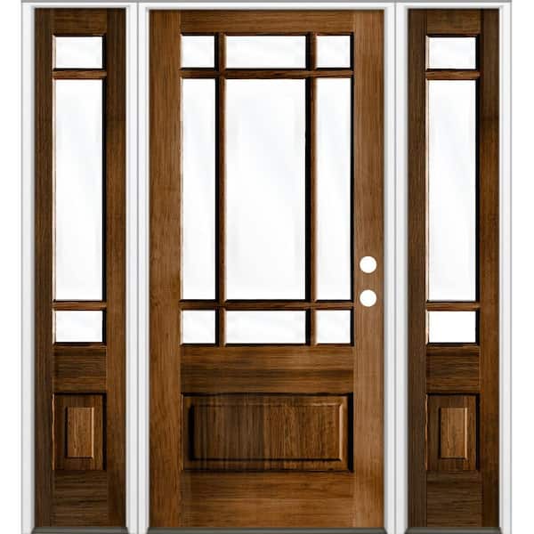 36 in. x 80 in. 3/4 Prairie-Lite Provincial Stain Left Hand Hemlock Prehung Front Door Double Sidelite