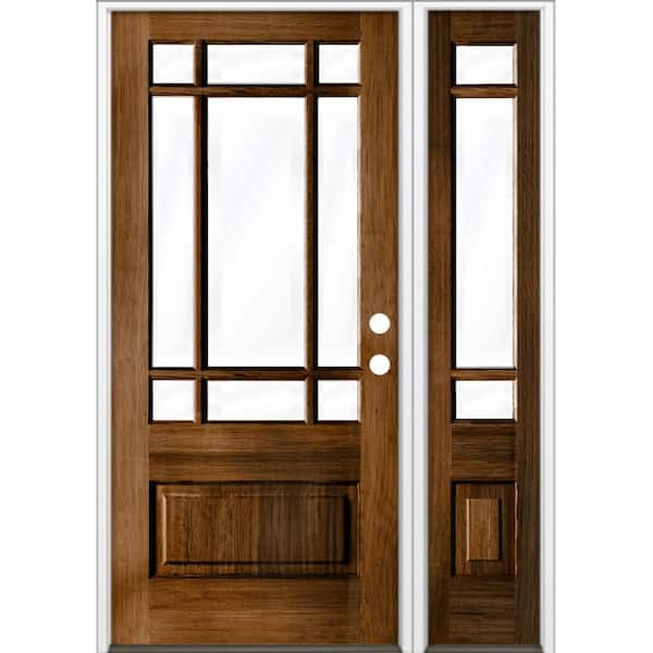 36 in. x 80 in. 3/4 Prairie-Lite Provincial Stain Left Hand Hemlock Wood Prehung Front Door Right Sidelite