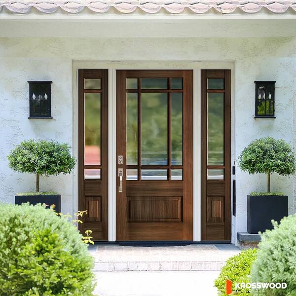 36 in. x 80 in. 3/4 Prairie-Lite Red Mahogany Stain Right Hand Hemlock Prehung Front Door Double Sidelite