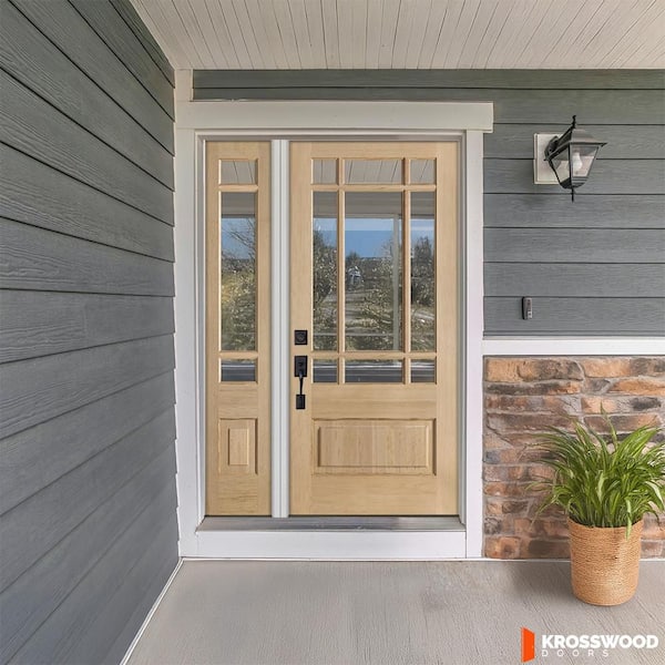 36 in. x 80 in. 3/4 Prairie-Lite with Beveled Clear Glass Unfinished Right Hand Hemlock Prehung Front Door Left Sidelite