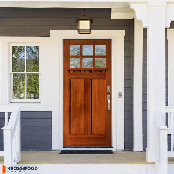 36 in. x 80 in. 6-Lite Craftsman Left Hand Red Chestnut Stain Hemlock Prehung Front Door