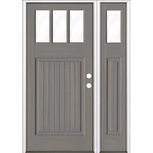 36 in. x 80 in. Craftsman 3-Lite Clear Glass VG Grey Stain Left Hand Hemlock Wood Prehung Front Door w/RSL