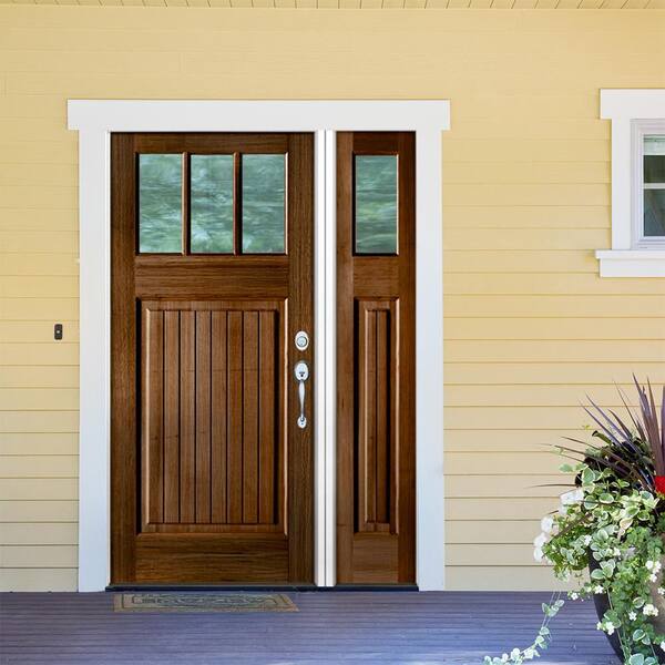 36 in. x 80 in. Craftsman 3-Lite Clear Glass VG Provincial Stain Left Hand Hemlock Wood Prehung Front Door w/RSL