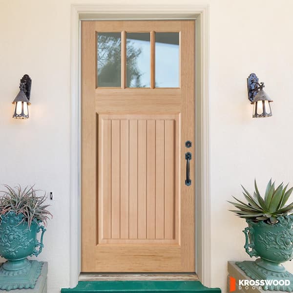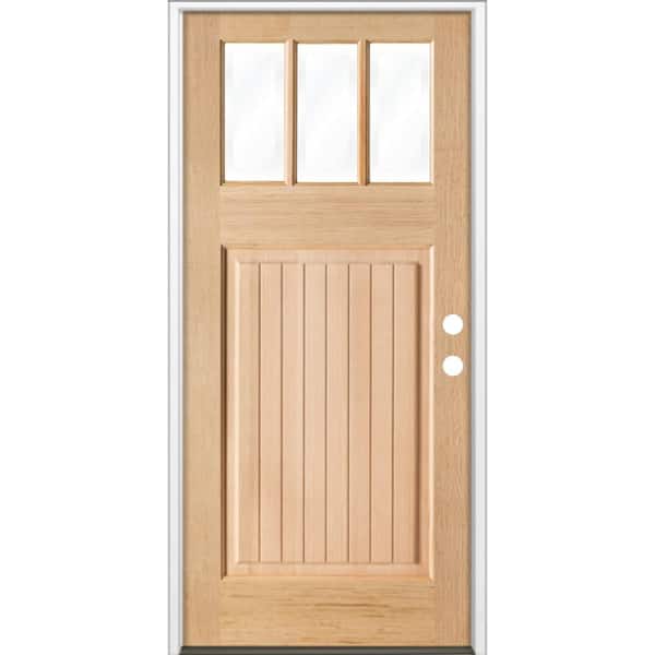 36 in. x 80 in. Craftsman 3 Lite V Groove Unfinished Stain Left-Hand/Inswing Hemlock Prehung Front Door