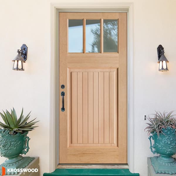 36 in. x 80 in. Craftsman 3 Lite V Groove Unfinished Stain Right-Hand/Inswing Hemlock Prehung Front Door