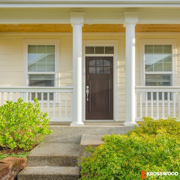 36 in. x 80 in. Craftsman 6 Lite V Groove Arch Top Black Stain Right-Hand/Inswing Hemlock Prehung Front Door