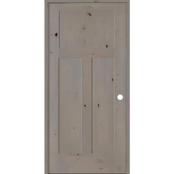 36 in. x 80 in. Craftsman Knotty Alder 3-Panel Left-Handed Grey Stain Solid Wood Single Prehung Interior Door