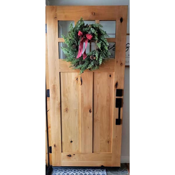 36 in. x 80 in. Craftsman Knotty Alder Left-Hand/Inswing 6-Lite Clear Glass Cedar Stain Wood Prehung Front Door