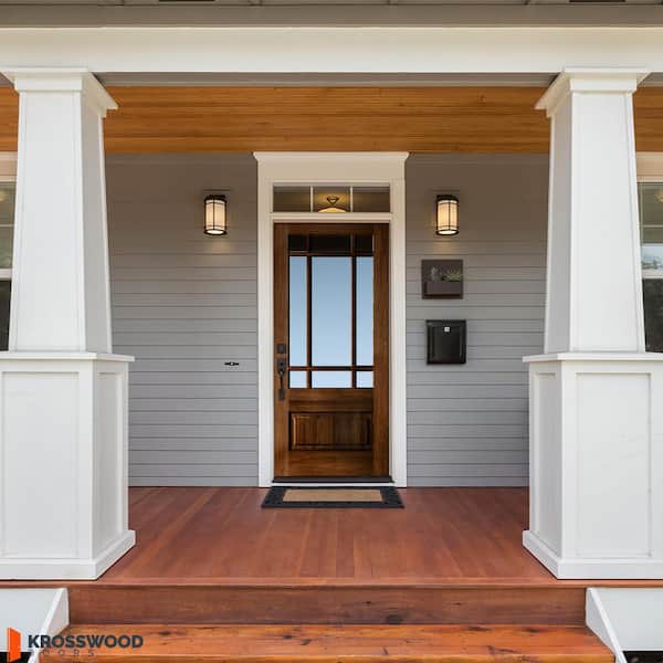 36 in. x 80 in. Craftsman Prairie 3/4 Lite Clear Glass Provincial Stain Right-Hand/Inswing Hemlock Prehung Front Door