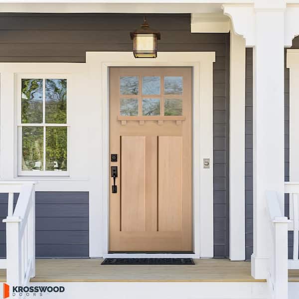 36 in. x 80 in. Craftsman Right Hand 6-Lite Unfinished Hemlock Prehung Front Door