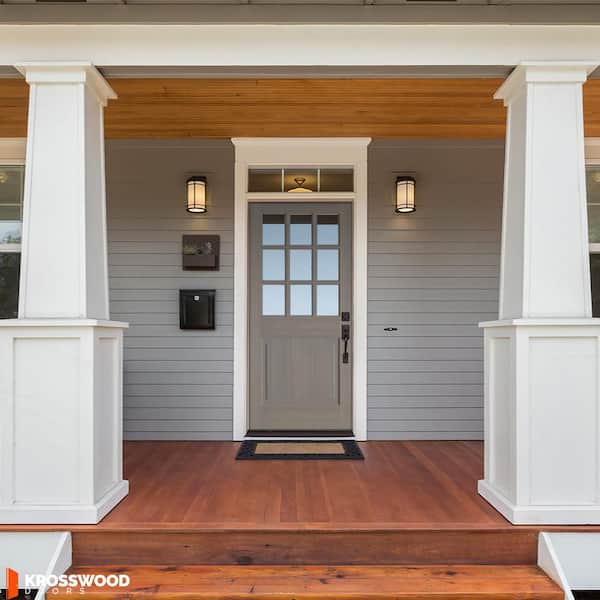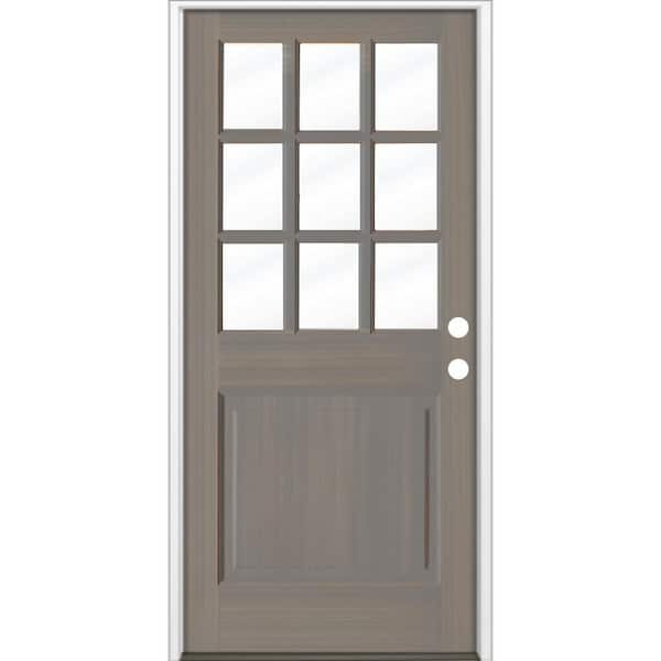 36 in. x 80 in. Farmhouse Beveled 9-Lite Clear Glass Left Hand Grey Stain Hemlock Wood Prehung Front Door