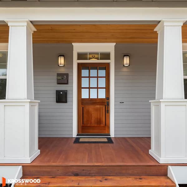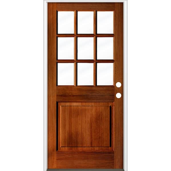 36 in. x 80 in. Farmhouse Beveled 9-Lite Clear Glass Left Hand Red Chestnut Stain Hemlock Wood Prehung Front Door