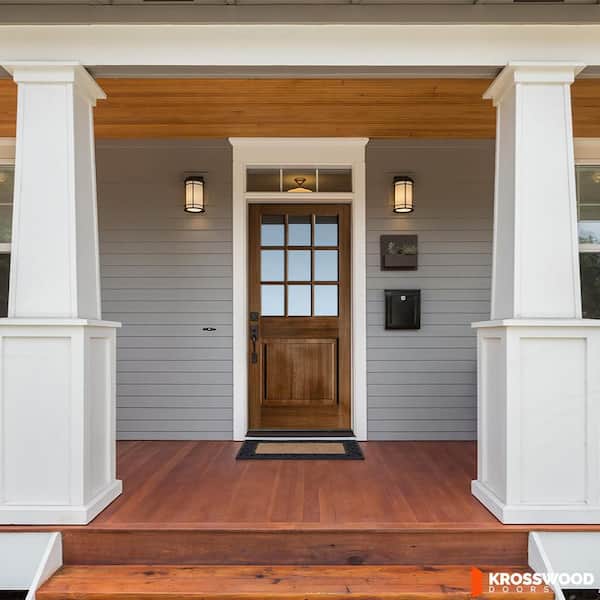 36 in. x 80 in. Farmhouse Beveled 9-Lite Clear Glass Right Hand Provincial Stain Hemlock Wood Prehung Front Door