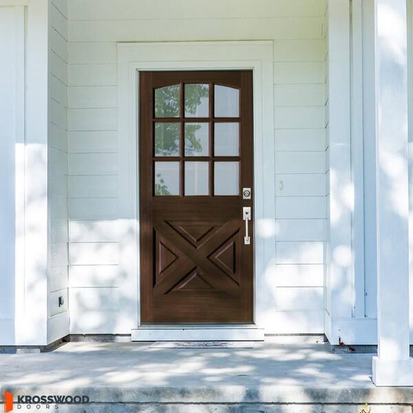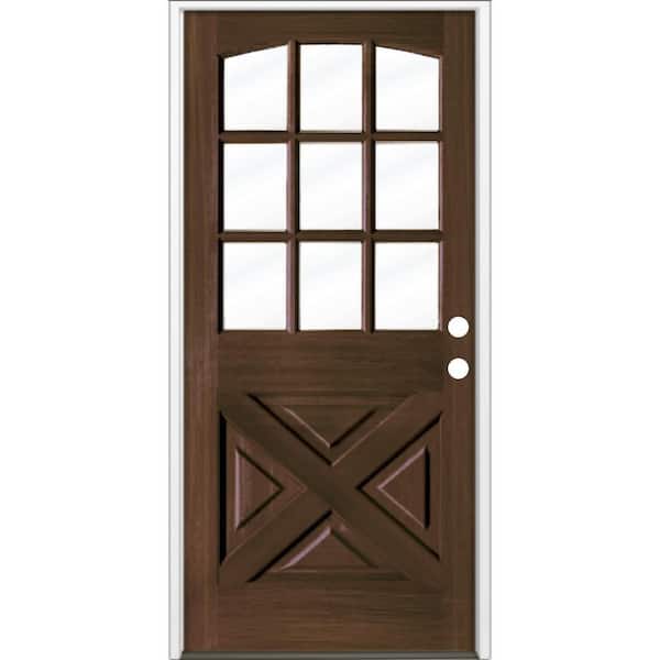 36 in. x 80 in. Farmhouse X Panel LH 1/2 Lite Clear Glass Black Stain Hemlock Prehung Front Door