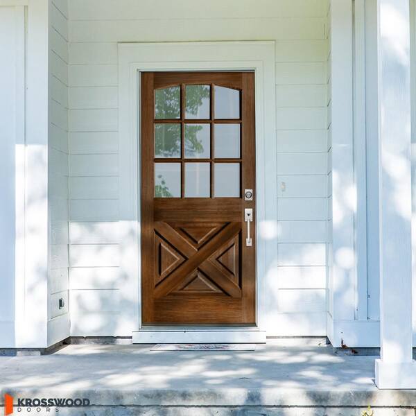 36 in. x 80 in. Farmhouse X Panel LH 1/2 Lite Clear Glass Provincial Stain Hemlock Prehung Front Door