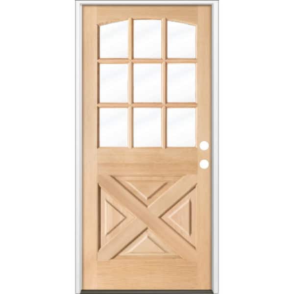 36 in. x 80 in. Farmhouse X Panel LH 1/2 Lite Clear Glass Unfinished Hemlock Prehung Front Door