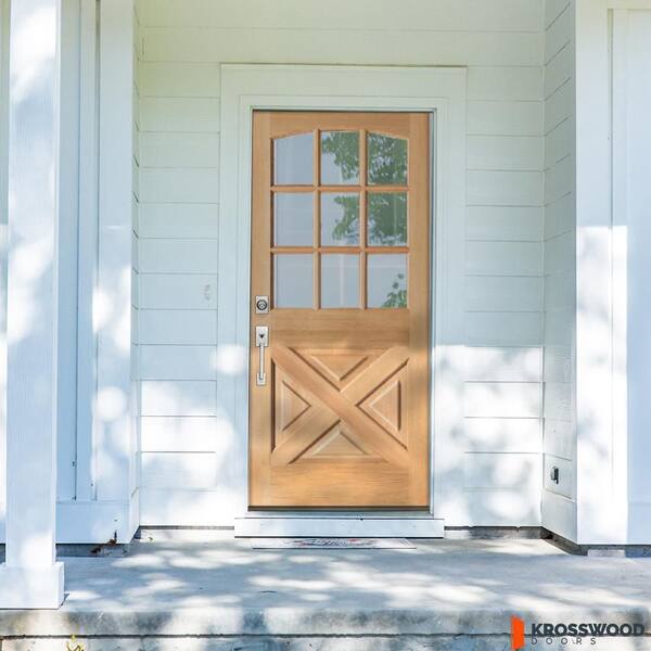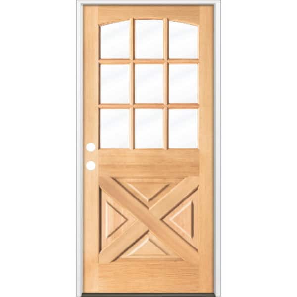 36 in. x 80 in. Farmhouse X Panel RH 1/2 Lite Clear Glass Clear Stain Hemlock Prehung Front Door