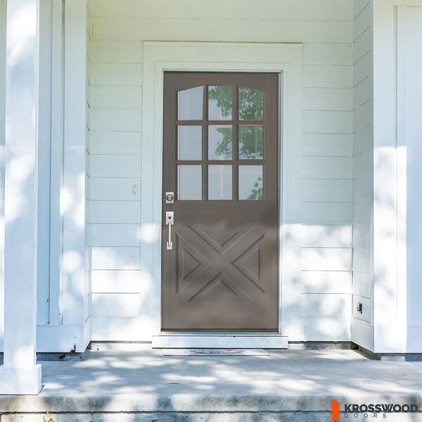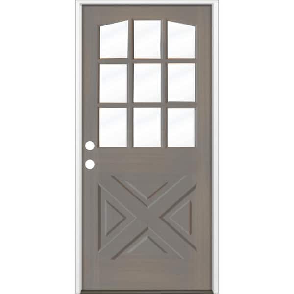 36 in. x 80 in. Farmhouse X Panel RH 1/2 Lite Clear Glass Grey Stain Hemlock Prehung Front Door