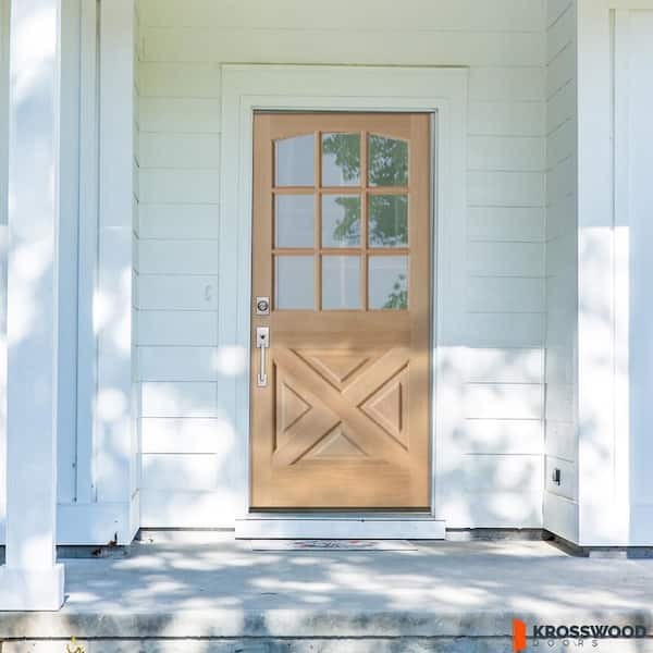 36 in. x 80 in. Farmhouse X Panel RH 1/2 Lite Clear Glass Unfinished Hemlock Prehung Front Door