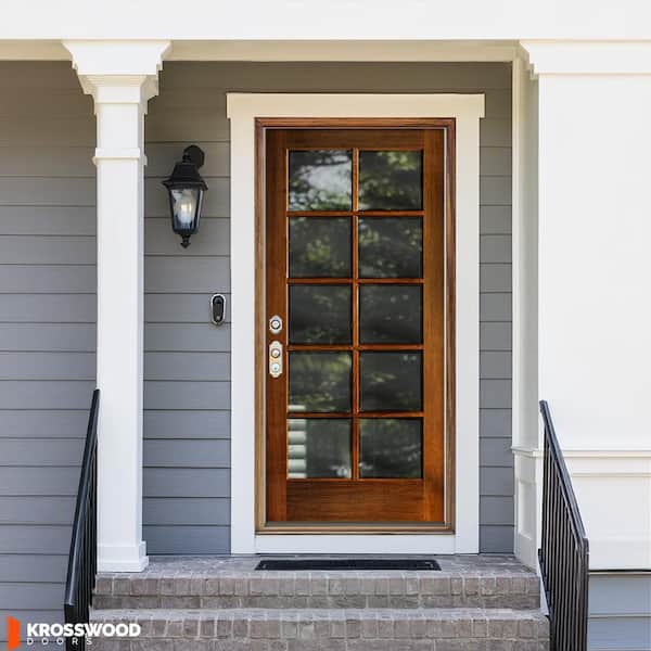 36 in. x 80 in. French RH Full Lite Clear Glass Red Chestnut Stain Hemlock Prehung Front Door