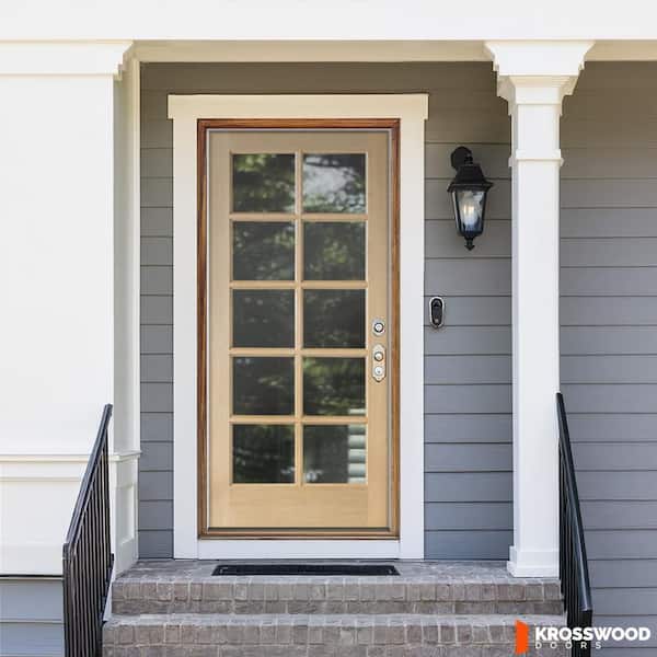36 in. x 80 in. French Universal/Reversible 10 Lite Insulated Clear Glass Window Unstained Hemlock Wood Front Door Slab